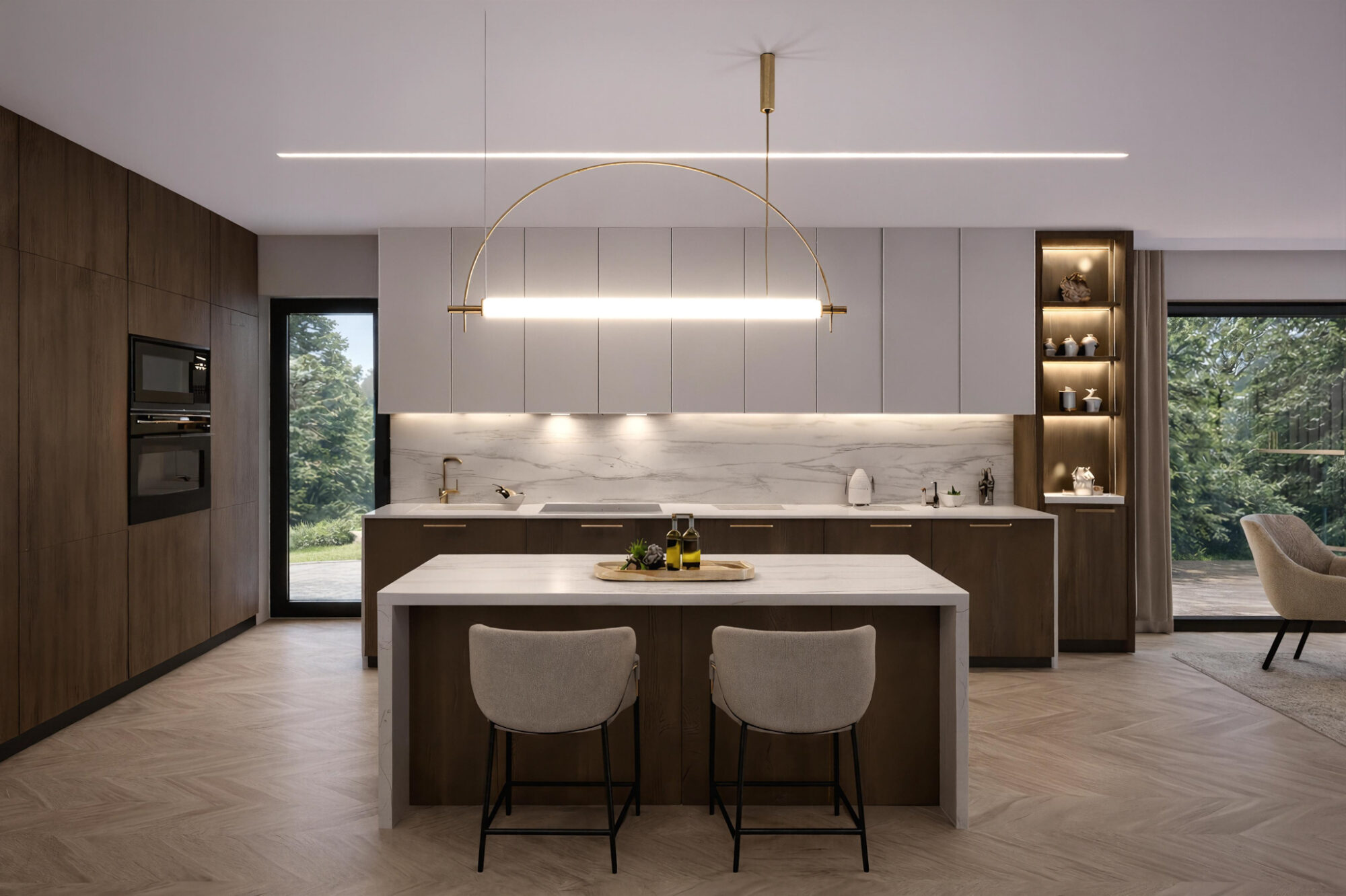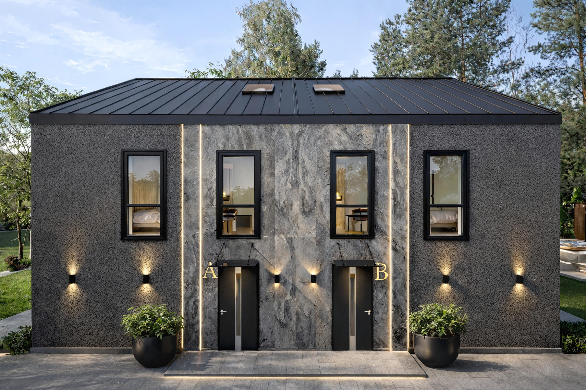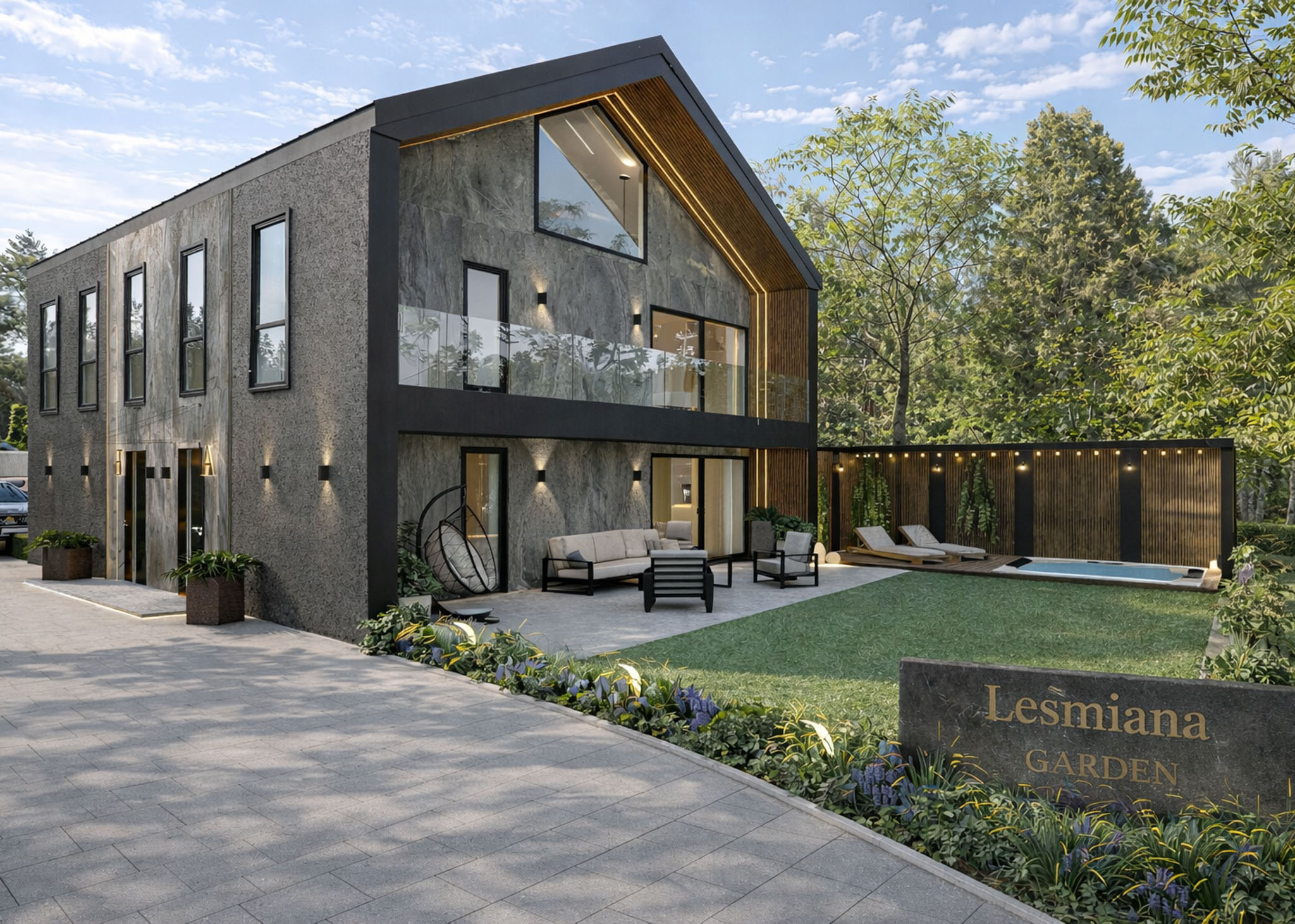 Leśmiana Garden is a boutique project of semi-detached houses, located on Leśmiana Street, in the prestigious Wola Justowska district of Krakow. The development’s architecture is based on simple, balanced shapes and natural materials, creating a cohesive and timeless form that complements the residential character of the district.
