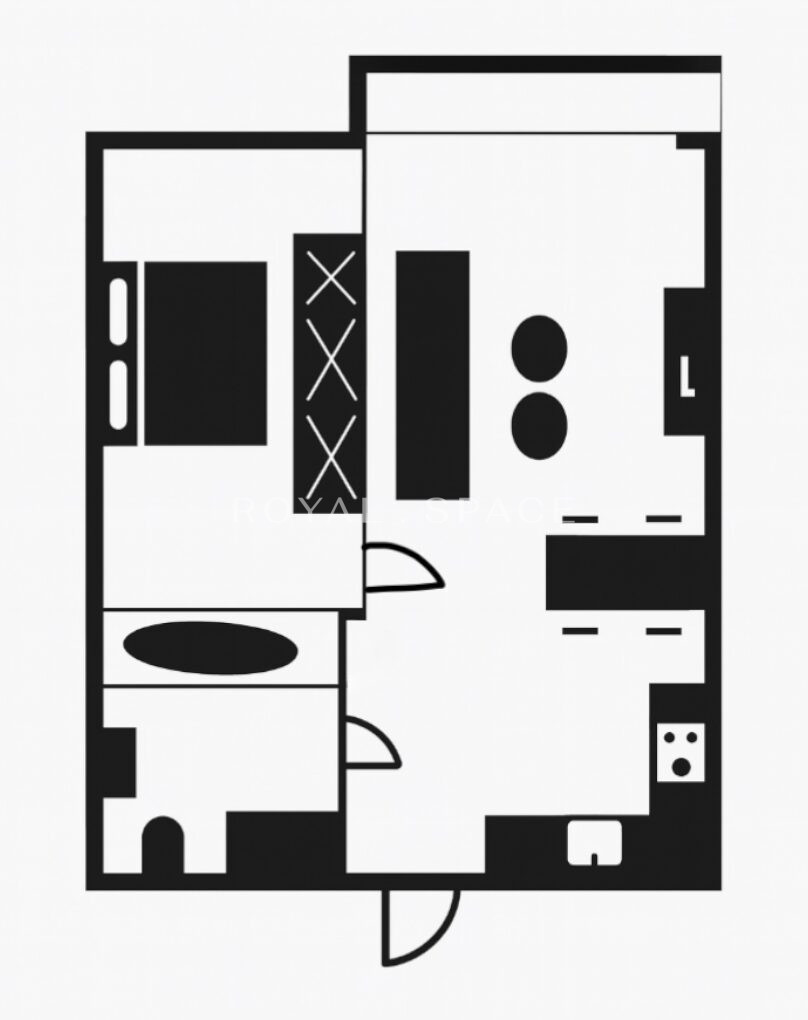 The 40 m² apartment is located on the building’s second floor and has been finished with attention to every detail. The bright, modern interior creates a cozy and elegant living space.