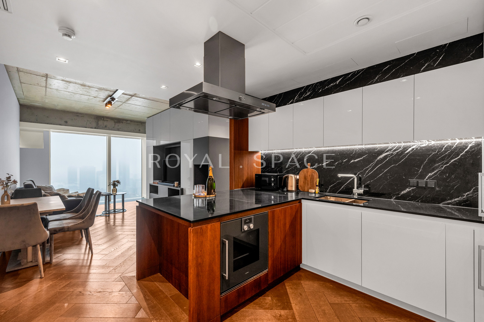 Prestige, comfort, and a million-dollar view are just some of the many advantages of this property. The apartment is located on one of the highest floors of the skyscraper, and extensive glazing allows for panoramic views of Warsaw from every room. The interior is distinguished by open space, high-quality finishing materials, and a variety of amenities.