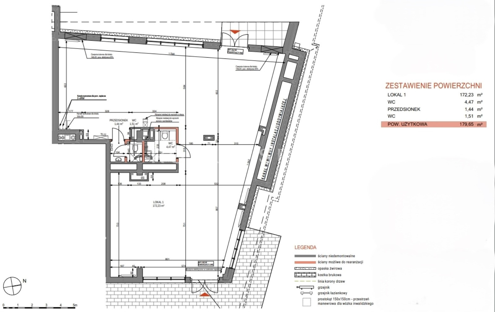 The large, open space offers a wide range of arrangement options and adapts to various types of businesses – from services, through catering, to office or medical activities.
