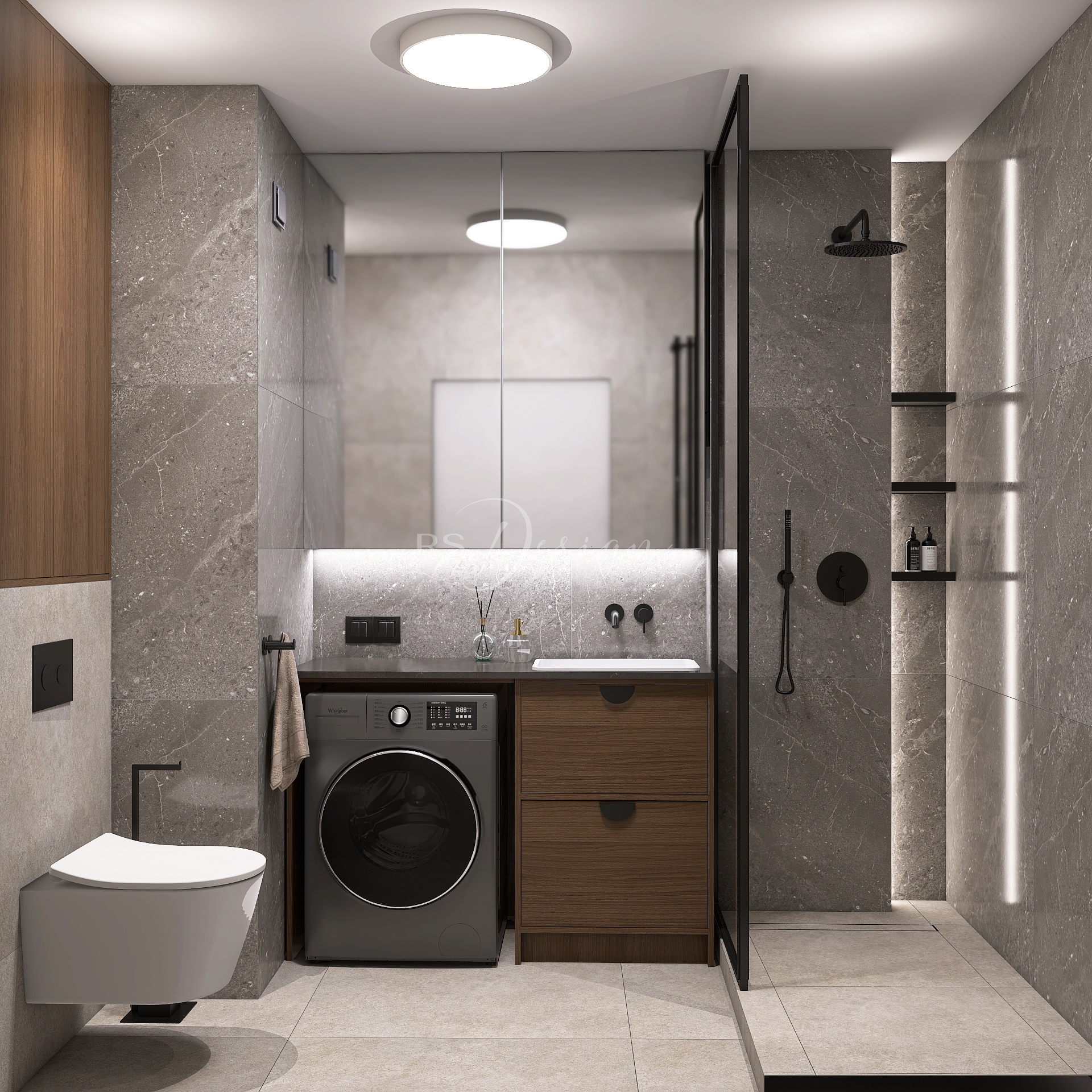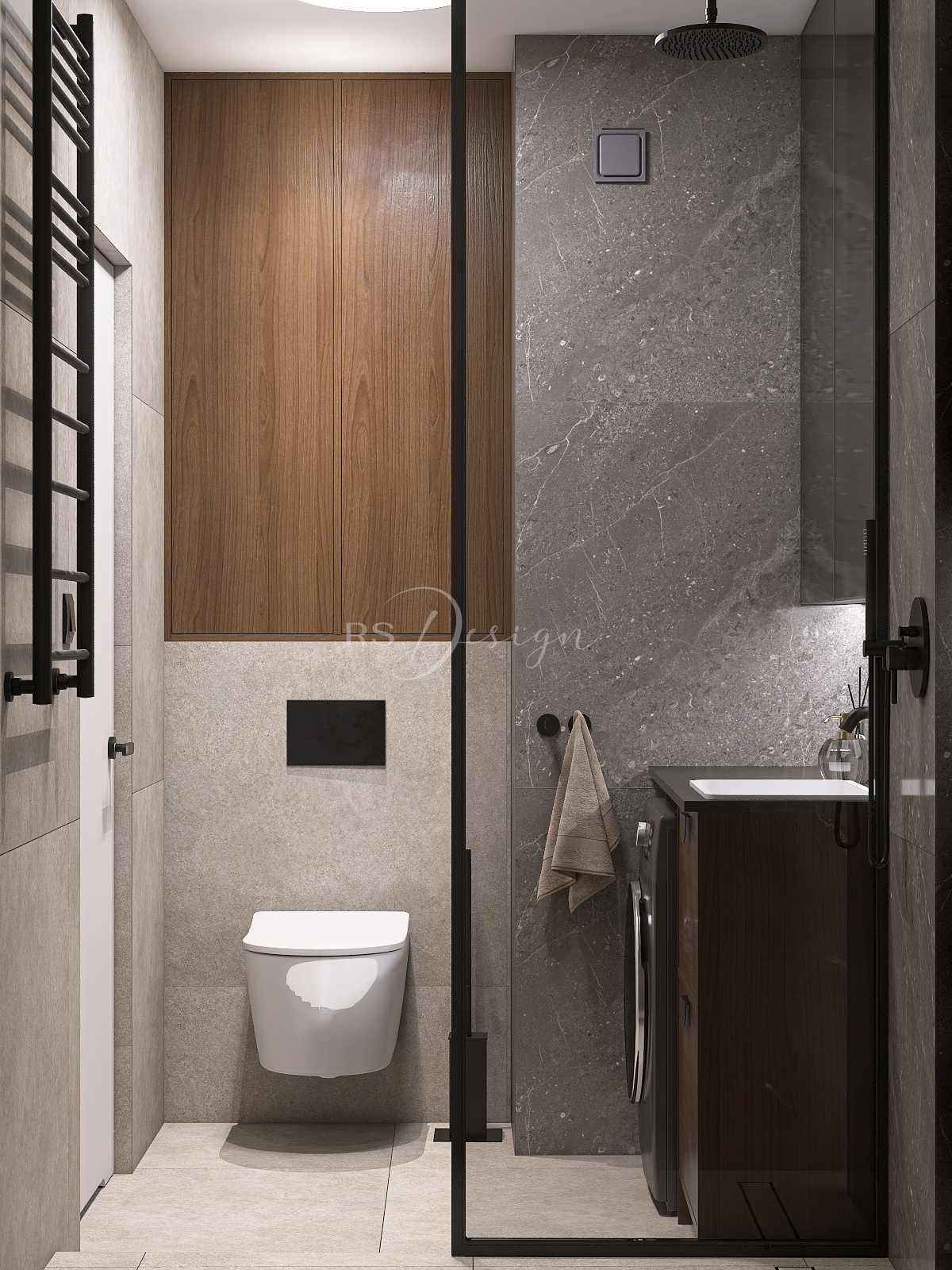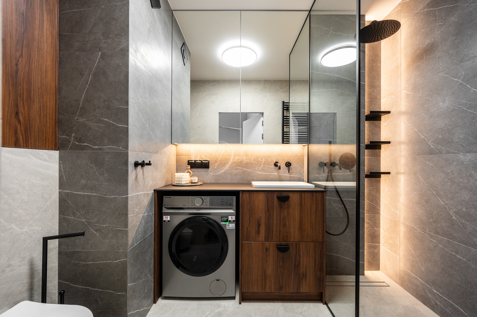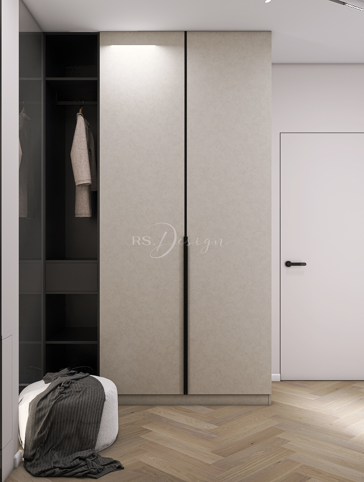 Realizacja apartamentu zaprojektowanego z myślą o najmie długoterminowym, który został wynajęty od razu po zakończeniu realizacji. Pomimo nierównoległych ścian udało się stworzyć ergonomiczny układ zapewniający wygodę przyszłym mieszkańcom. Strefa dzienna z aneksem kuchennym została urządzona w stonowanej palecie barw, gdzie ciepłe drewno i naturalne materiały współgrają z minimalistycznymi formami mebli. Wnętrze uzupełniają designerskie detale, takie jak miękka sofa w ciemnym odcieniu, elegancki stół z wygodnymi krzesłami oraz nastrojowe oświetlenie. Royal Space Design wspiera inwestorów i deweloperów w tworzeniu wnętrz, które nie tylko podnoszą komfort życia, ale także zwiększają wartość nieruchomości i wyróżniają ofertę na rynku – co potwierdza szybki sukces tej realizacji.
