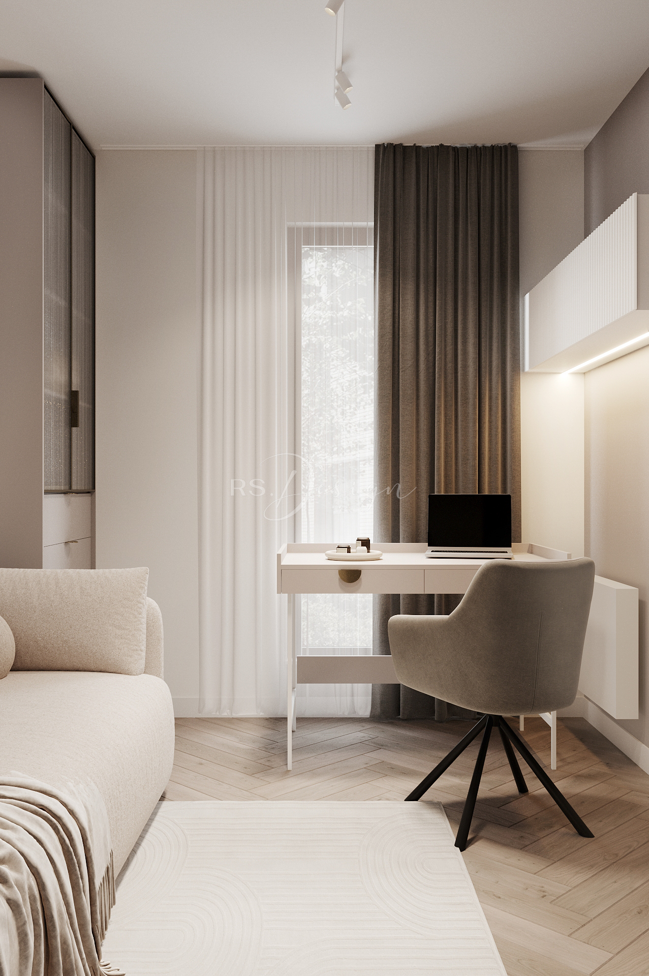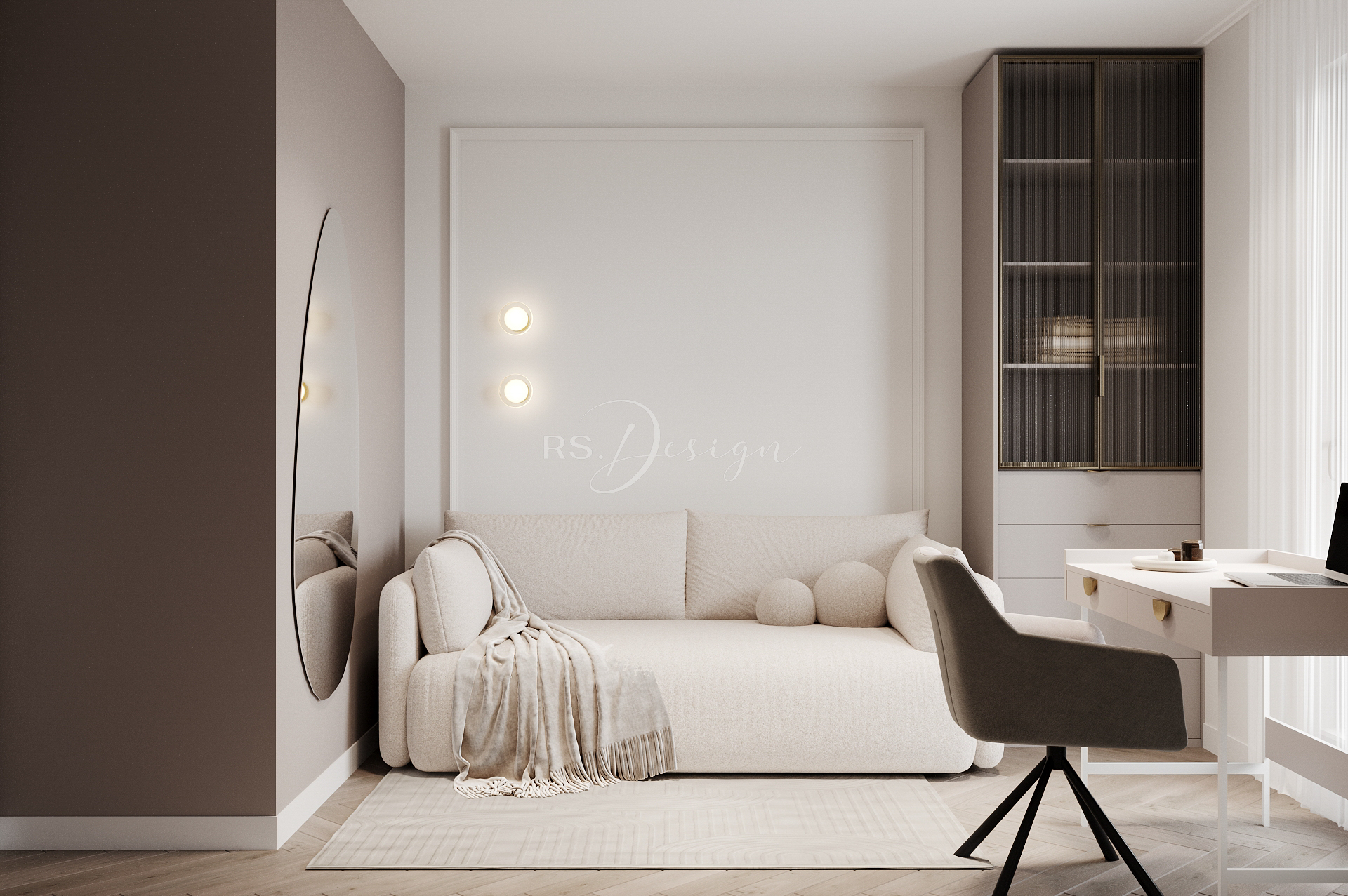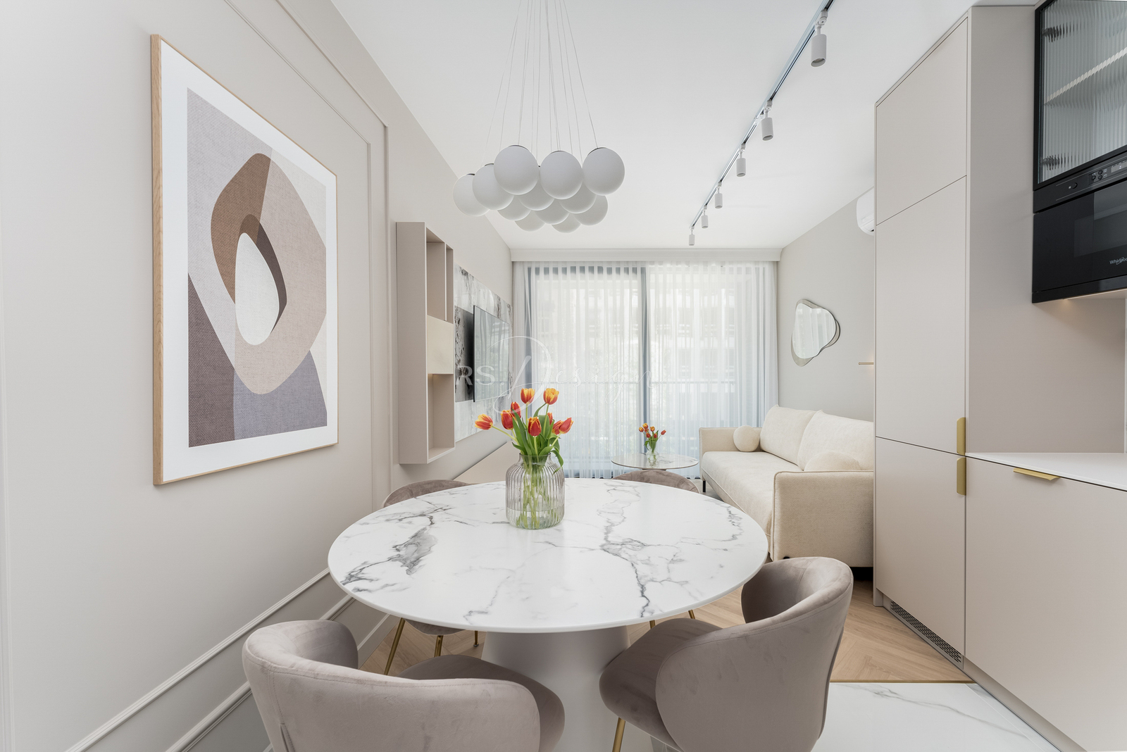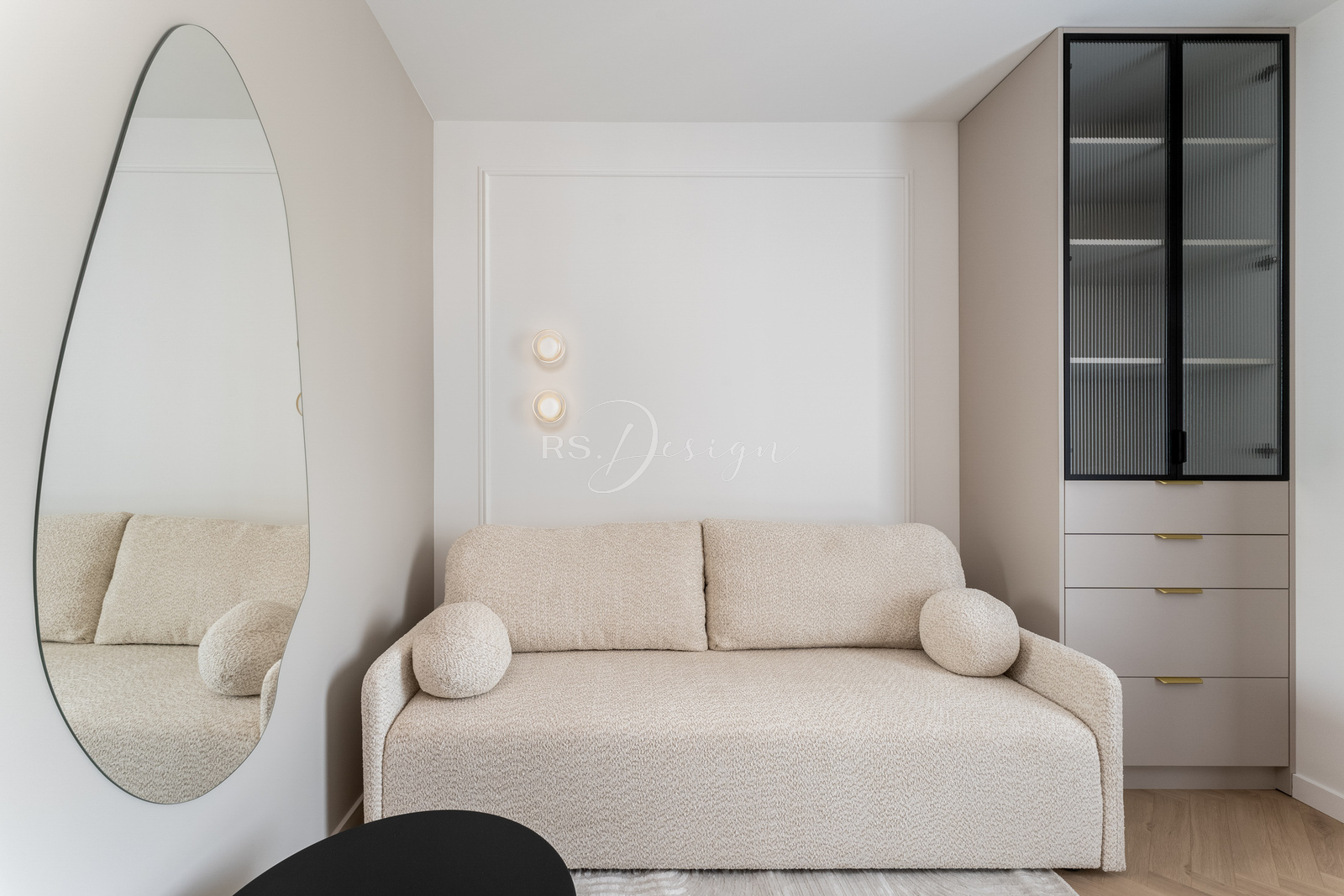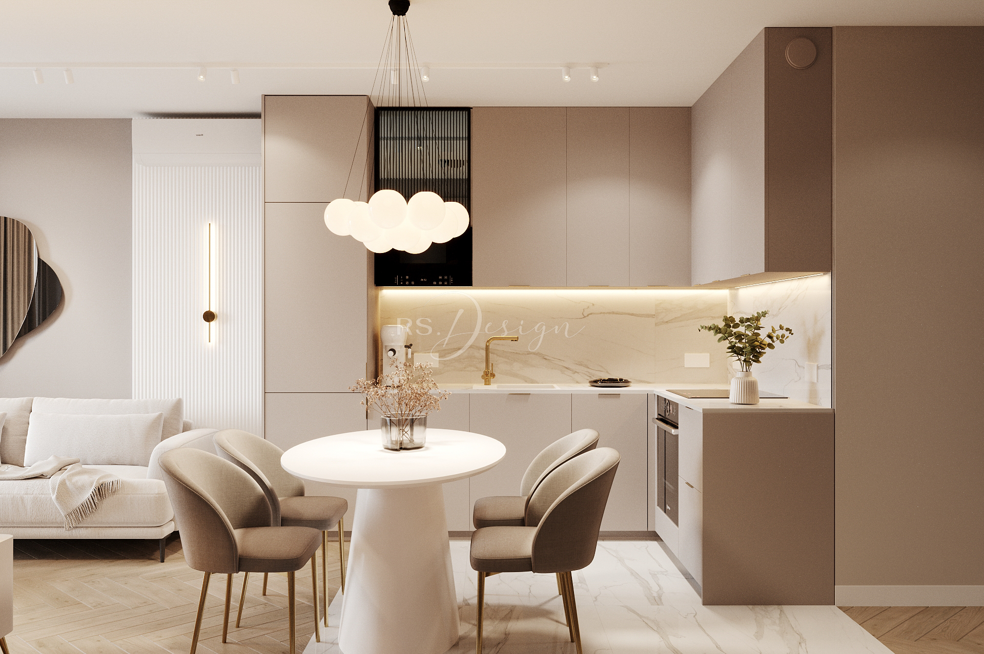 Nasz najnowszy projekt w inwestycji “Młyny Mogilska” to kwintesencja stylu modern classic – połączenia klasyki i nowoczesności w wyjątkowo harmonijnej formie. Wnętrze zachwyca subtelną paletą kolorów, w której dominują beże, taupe i biel, podkreślonych marmurowymi motywami oraz złotymi akcentami. Starannie dobrane geometryczne formy mebli oraz eleganckie detale, takie jak listwy ścienne i nastrojowe oświetlenie, tworzą przestrzeń, która łączy luksus z funkcjonalnością. Miękkie tkaniny i wyważone proporcje elementów sprawiają, że wnętrze emanuje ciepłem i wyrafinowaniem.