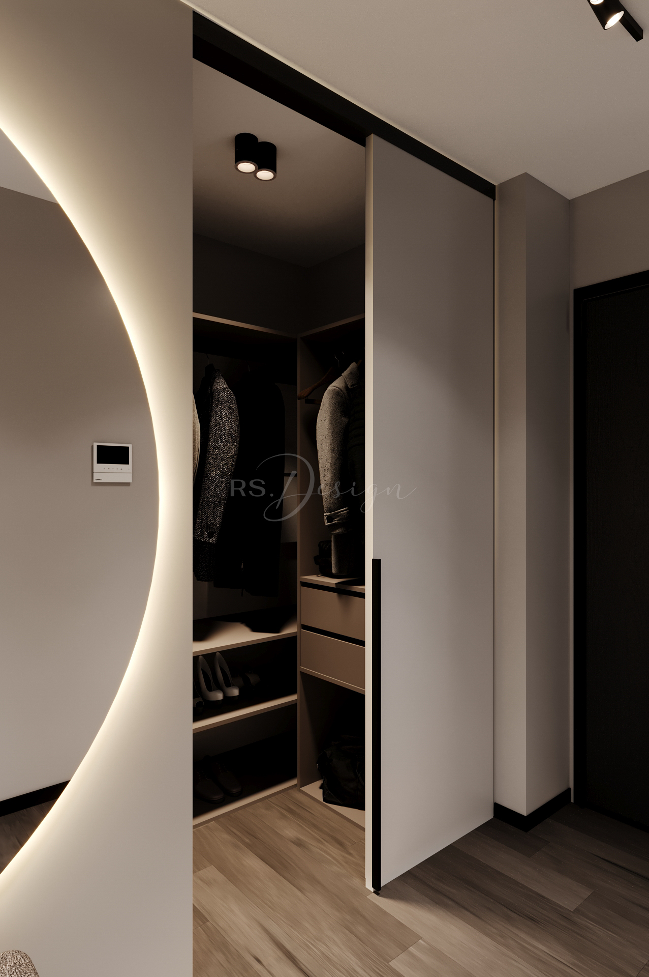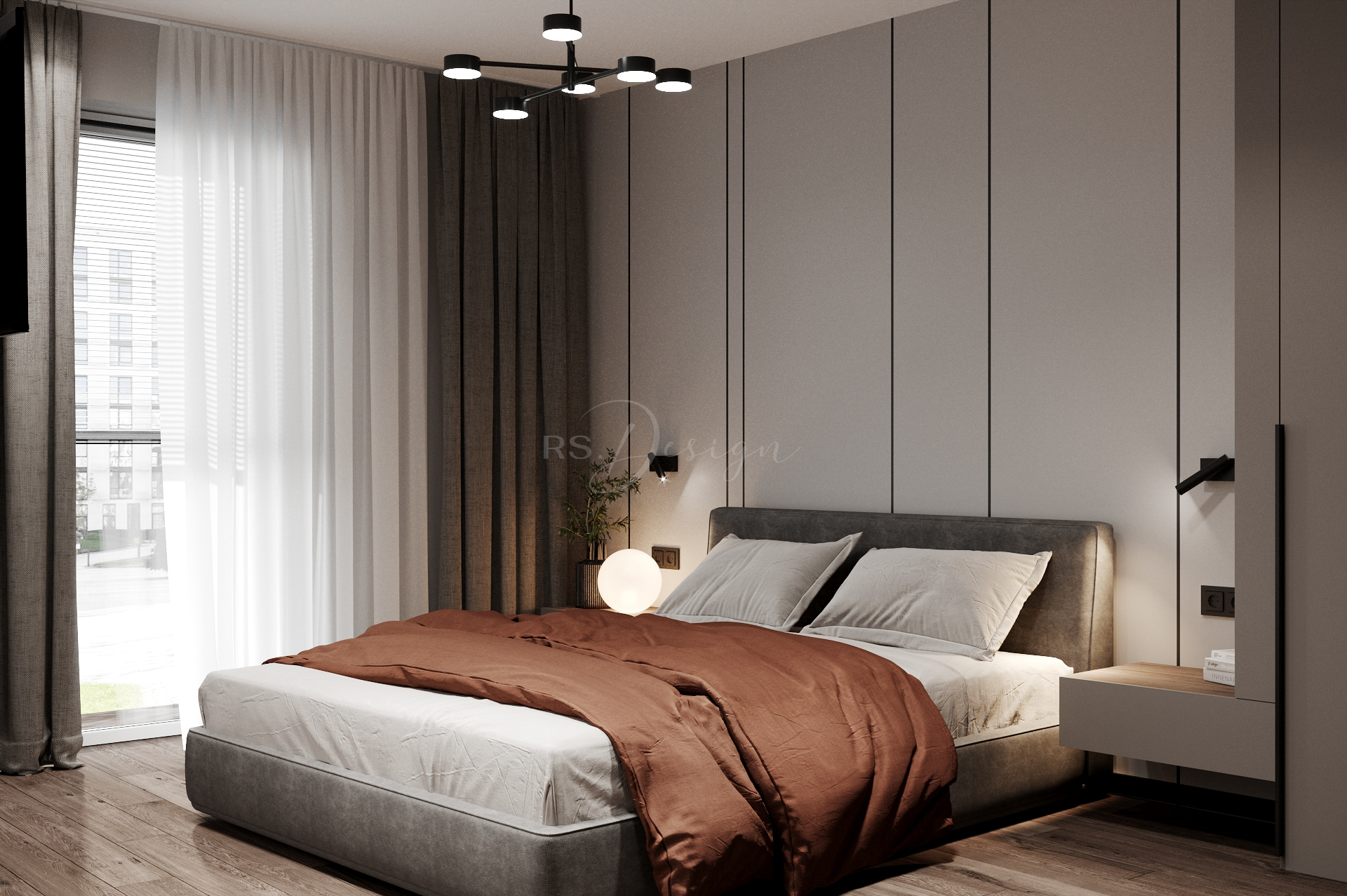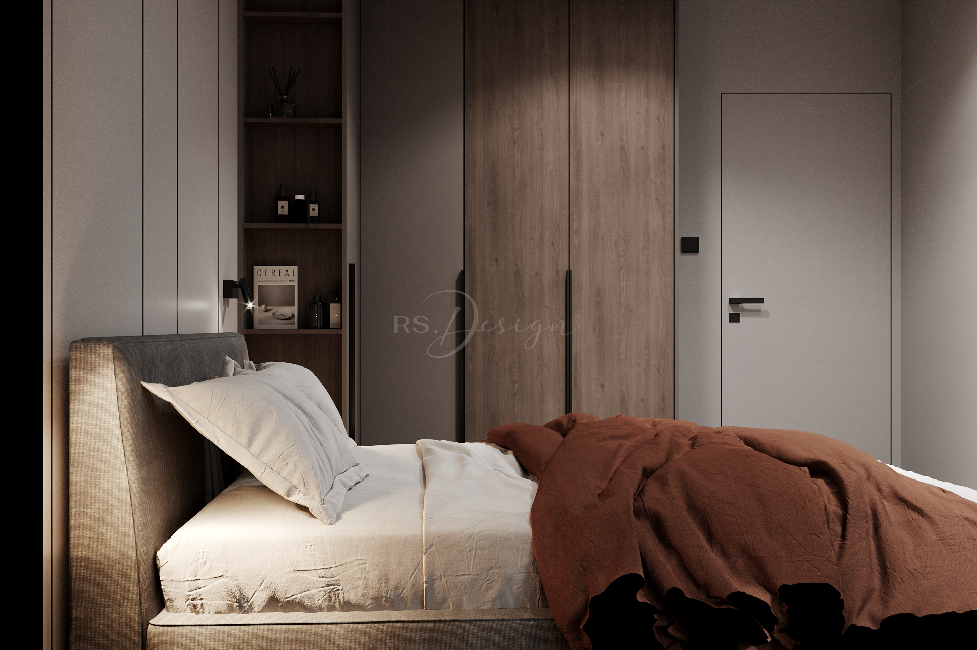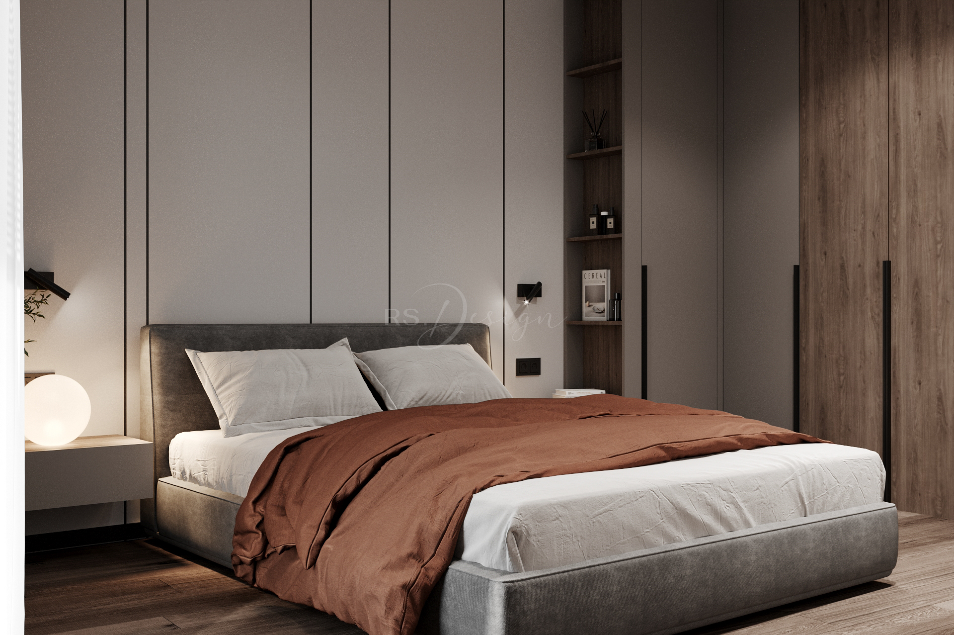 Główna sypialnia zapewnia prywatność i wygodę dzięki pełnej zabudowie stolarskiej oraz miękkiej, przytulnej aranżacji. Układ mieszkania uzupełniają funkcjonalna garderoba, duża łazienka oraz dodatkowe strefy przechowywania, które pozwalają utrzymać porządek bez rezygnowania z lekkości przestrzeni. Przemyślany projekt RS Design nadaje wnętrzu spójność i ponadczasowy charakter, idealnie wpisując się w klimat odnowionej kamienicy i podnosząc komfort codziennego użytkowania.