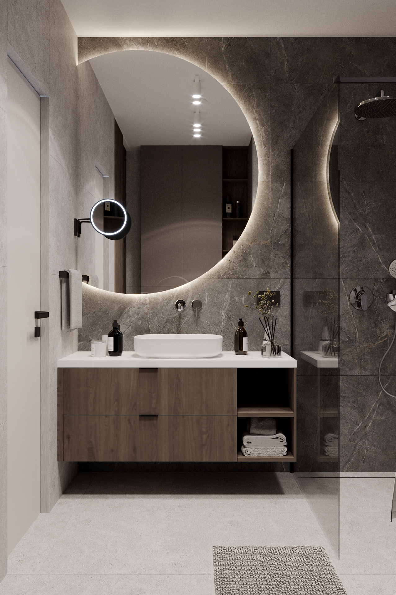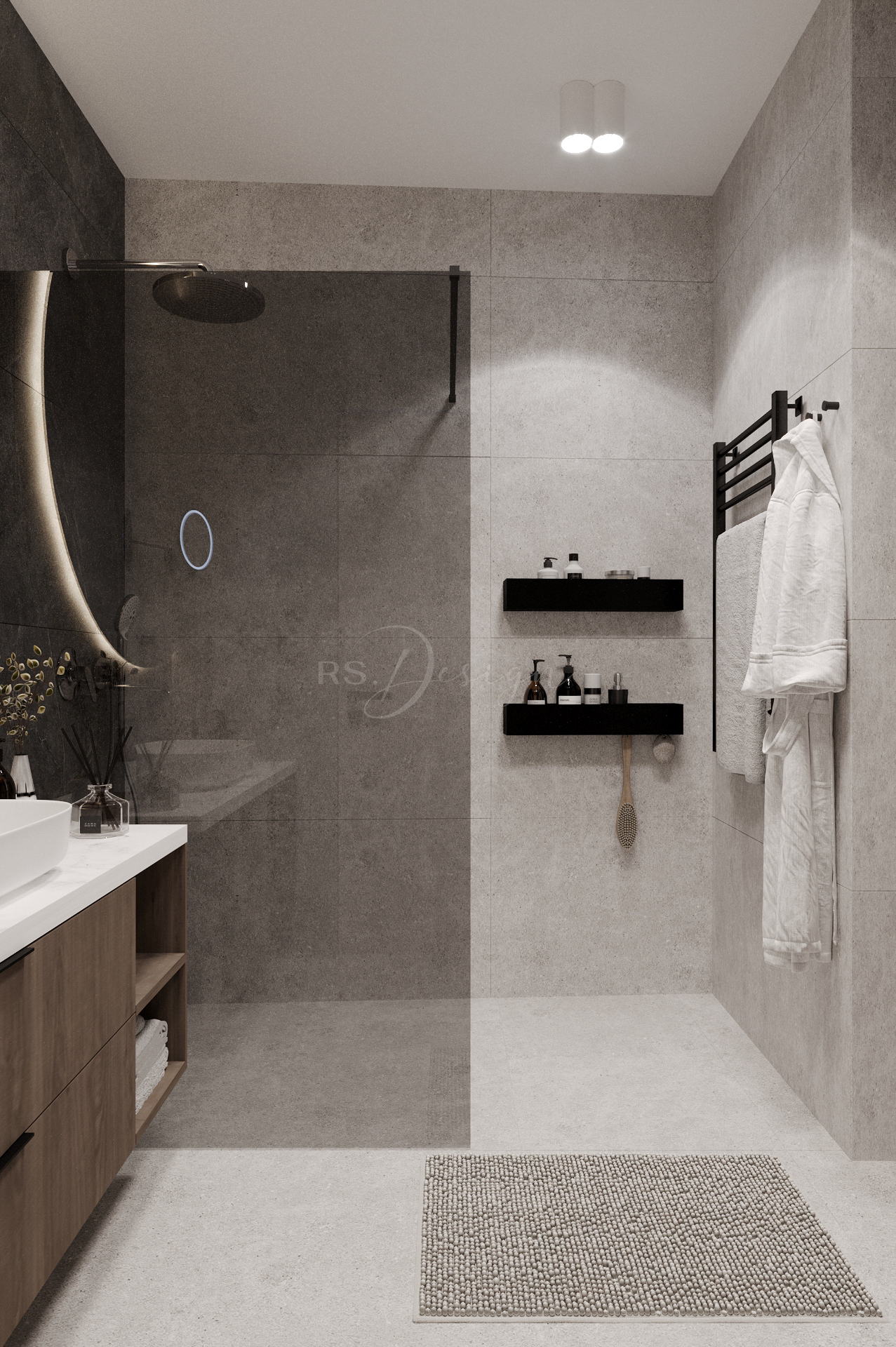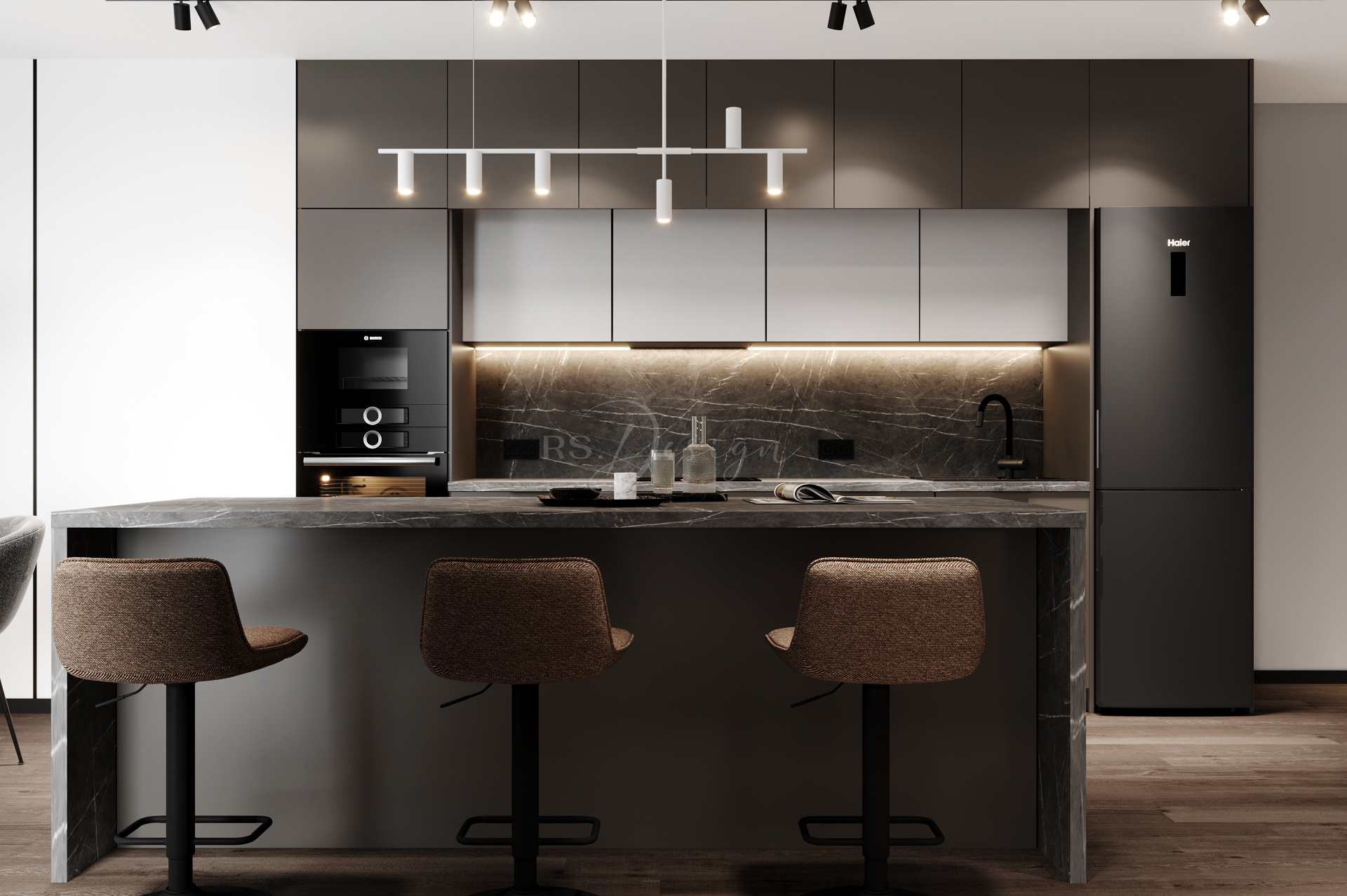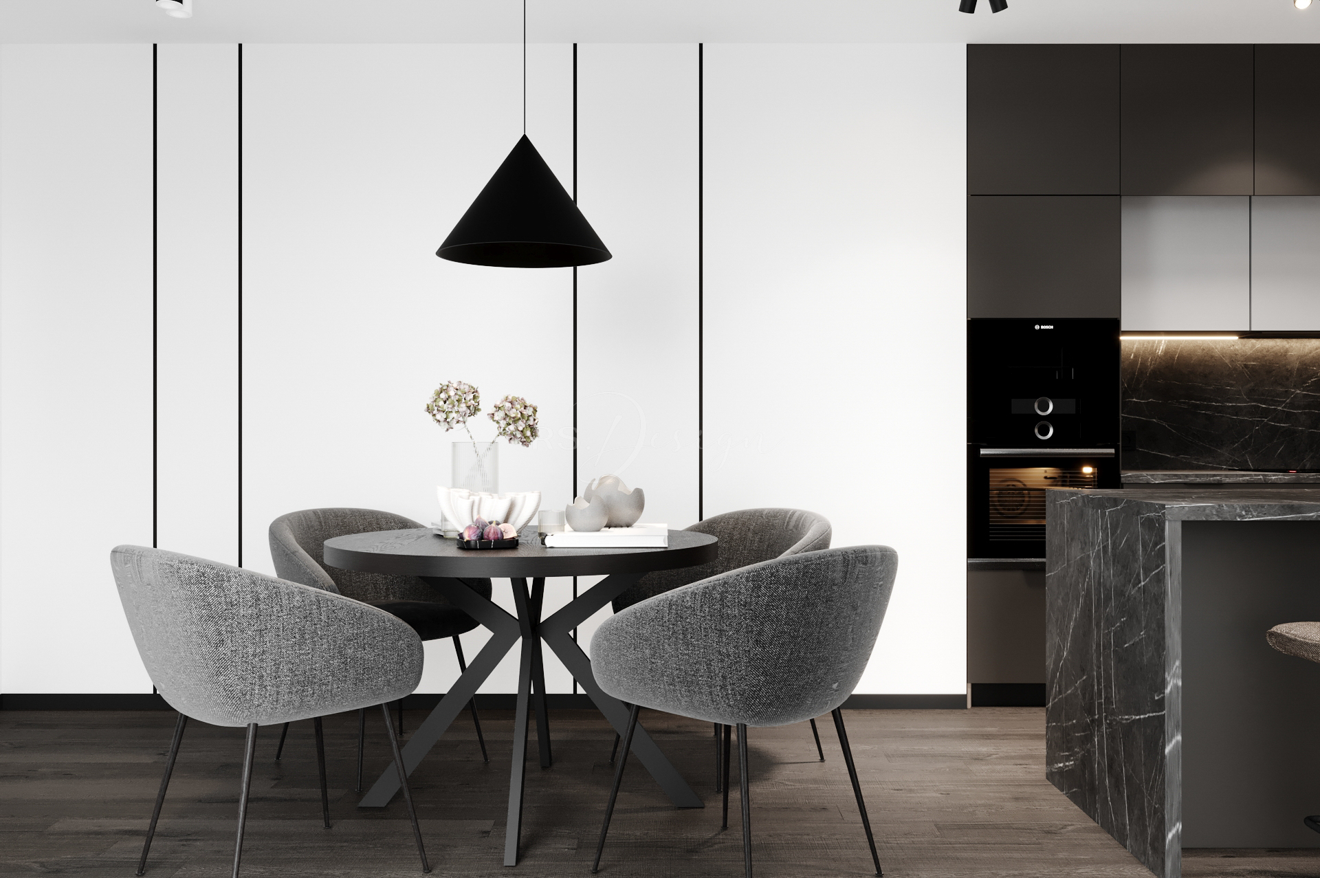 Mieszkanie zaprojektowano z myślą o nowoczesnym, komfortowym życiu w odrestaurowanej kamienicy. Wnętrze łączy elegancję naturalnych materiałów, stonowaną kolorystykę i funkcjonalne rozwiązania, które odpowiadają na potrzeby współczesnych mieszkańców. Centralną część stanowi przestronna strefa dzienna z dużymi przeszkleniami, wydzieloną częścią wypoczynkową i ergonomicznym miejscem do pracy. Kuchnia z monumentalną wyspą wykonana została w wysokim standardzie, tworząc idealne miejsce do wspólnego gotowania i spędzania czasu.