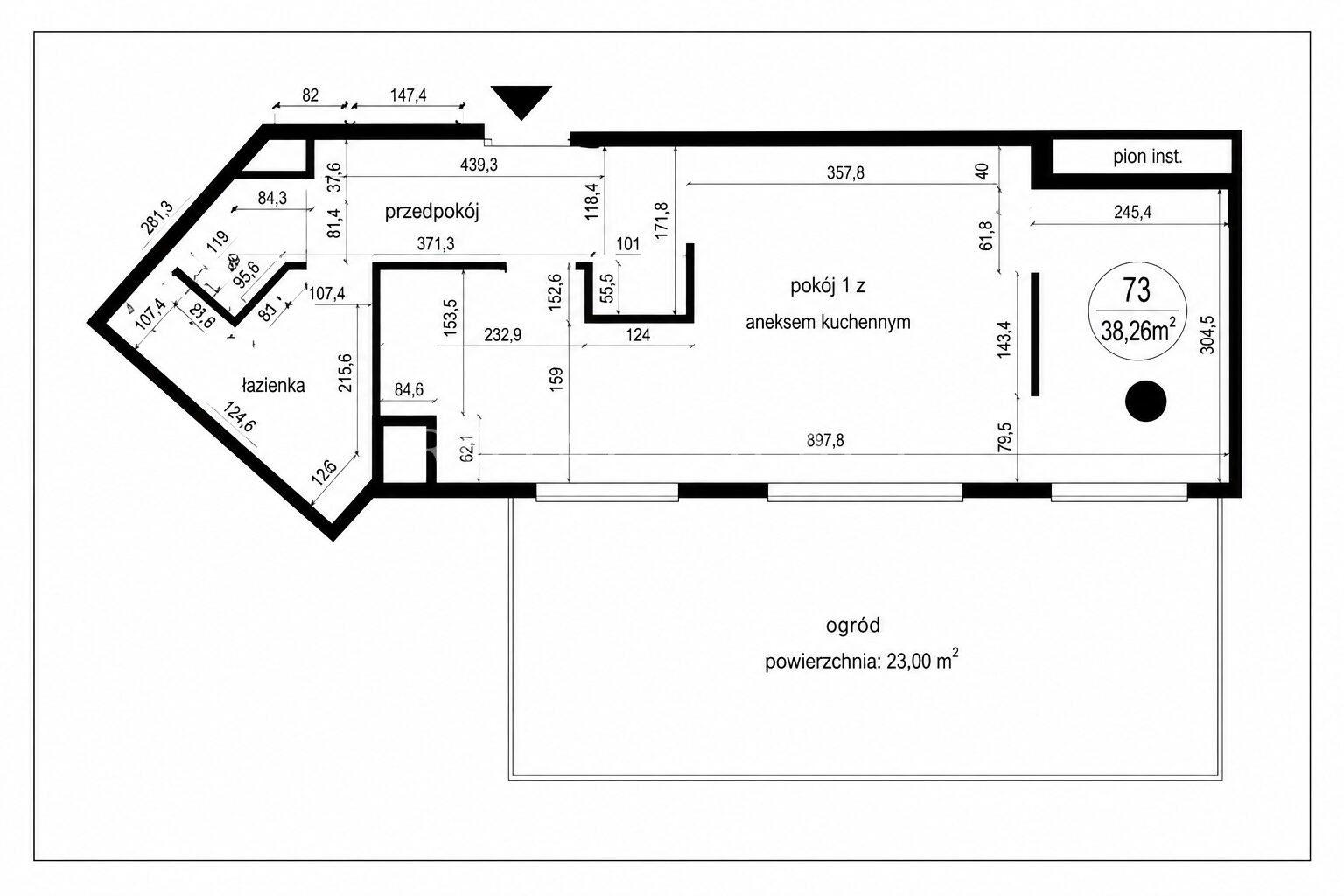 Największym atutem nieruchomości jest prywatny ogródek, dostępny bezpośrednio z salonu, który stanowi idealną przestrzeń do relaksu.