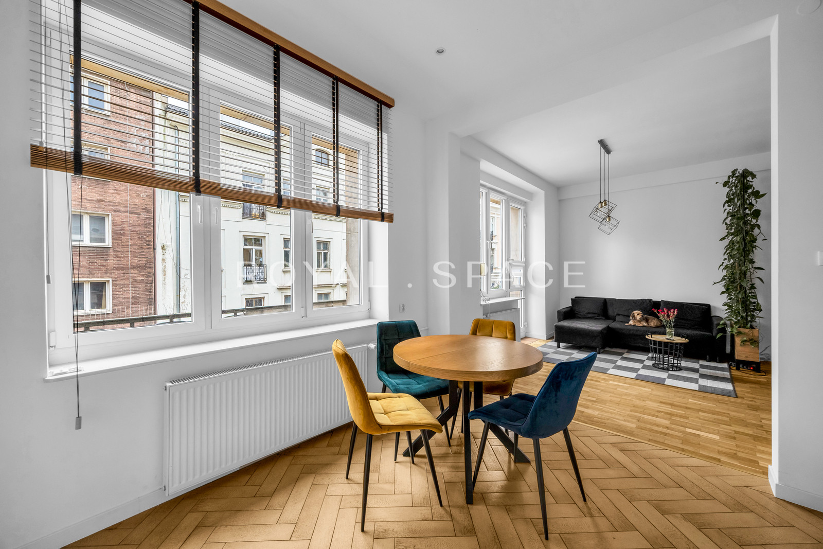 Mieszkanie przeszło generalny remont i zostało wykończone w nowoczesnym stylu z dbałością o każdy detal. Jasna, otwarta przestrzeń została zaprojektowana tak, aby maksymalnie wykorzystać atuty lokalizacji – największym z nich są duże okna z zapierającym dech widokiem na Plac Pięciu Rogów.