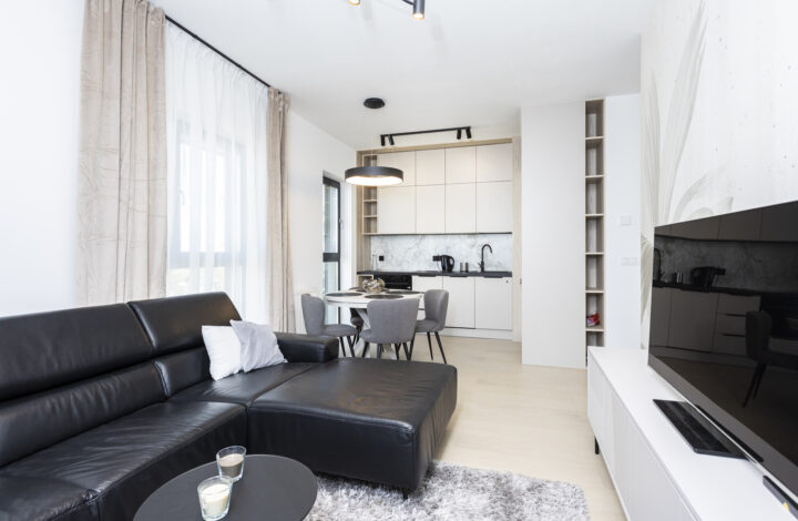 Apartament został urządzony w wysokim standardzie, jest w pełni umeblowany i wyposażony w sprzęt AGD. Jasne wnętrza oraz balkon z widokiem na panoramę miasta zapewniają komfort i wyjątkowy klimat.