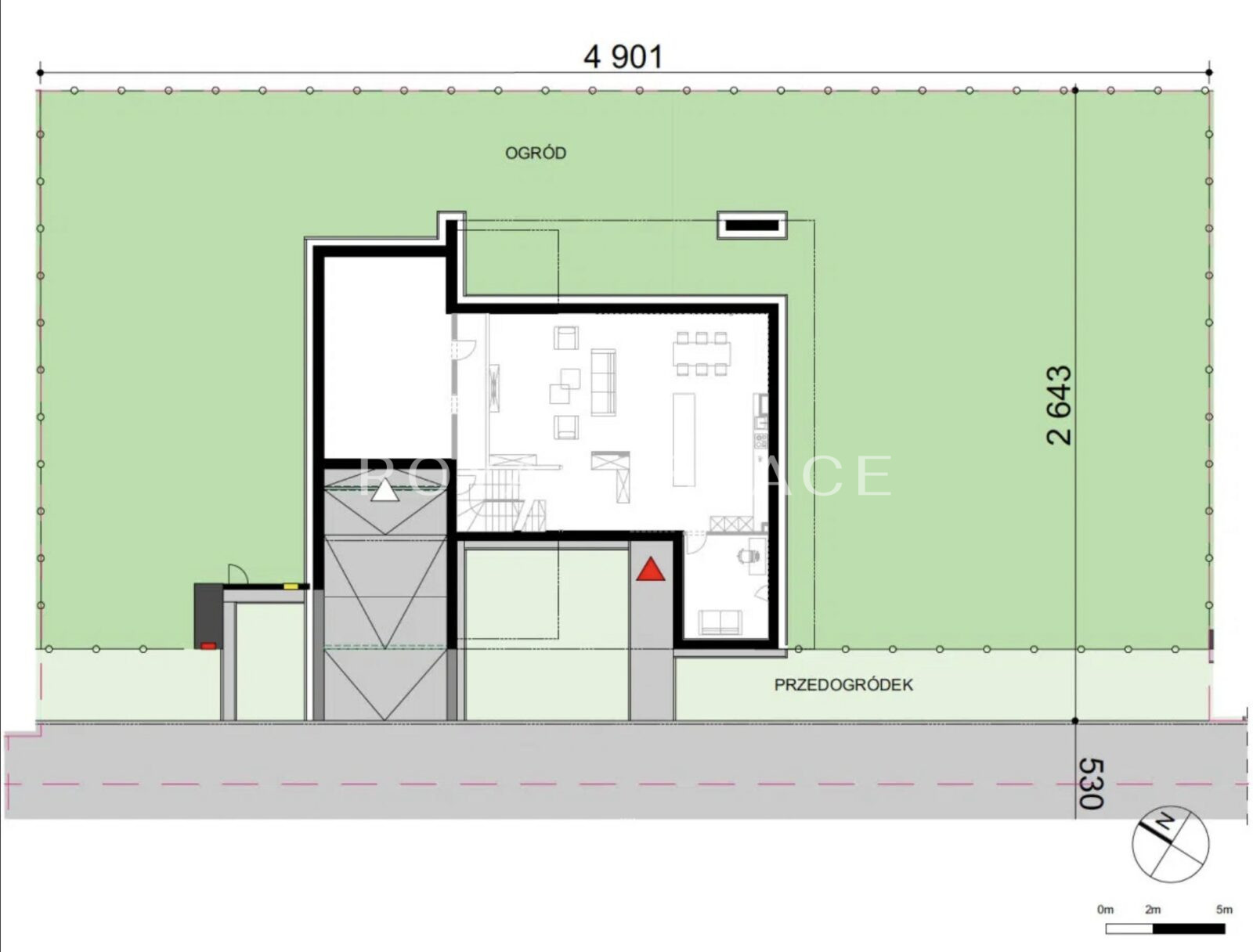 Działka o powierzchni 704 m² oferuje prywatny ogród o powierzchni blisko 400 m², który stanowi doskonałą przestrzeń do relaksu, rekreacji oraz aranżacji strefy wypoczynkowej. Uzupełnieniem jest duży taras na piętrze, zapewniający dodatkową, kameralną przestrzeń do odpoczynku.