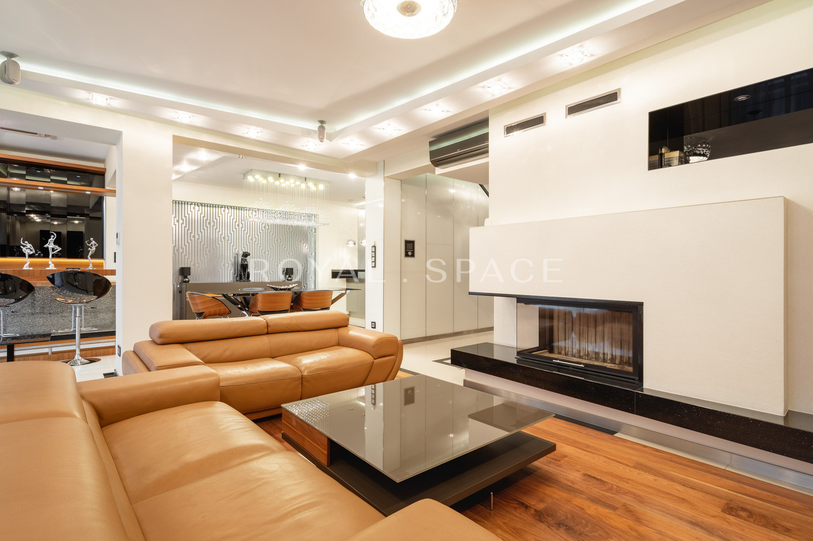Dom wyposażony został nie tylko w wykonane na indywidualne zamówienie meble, ale i w najwyższej jakości sprzęty AGD firmy Liebherr i Miele. Nieruchomość posiada niezależny monitoring wraz z systemem alarmowym oraz domofonem połączonym bezpośrednio z monitoringiem. Dom gotowy do zamieszkania, składa się z: