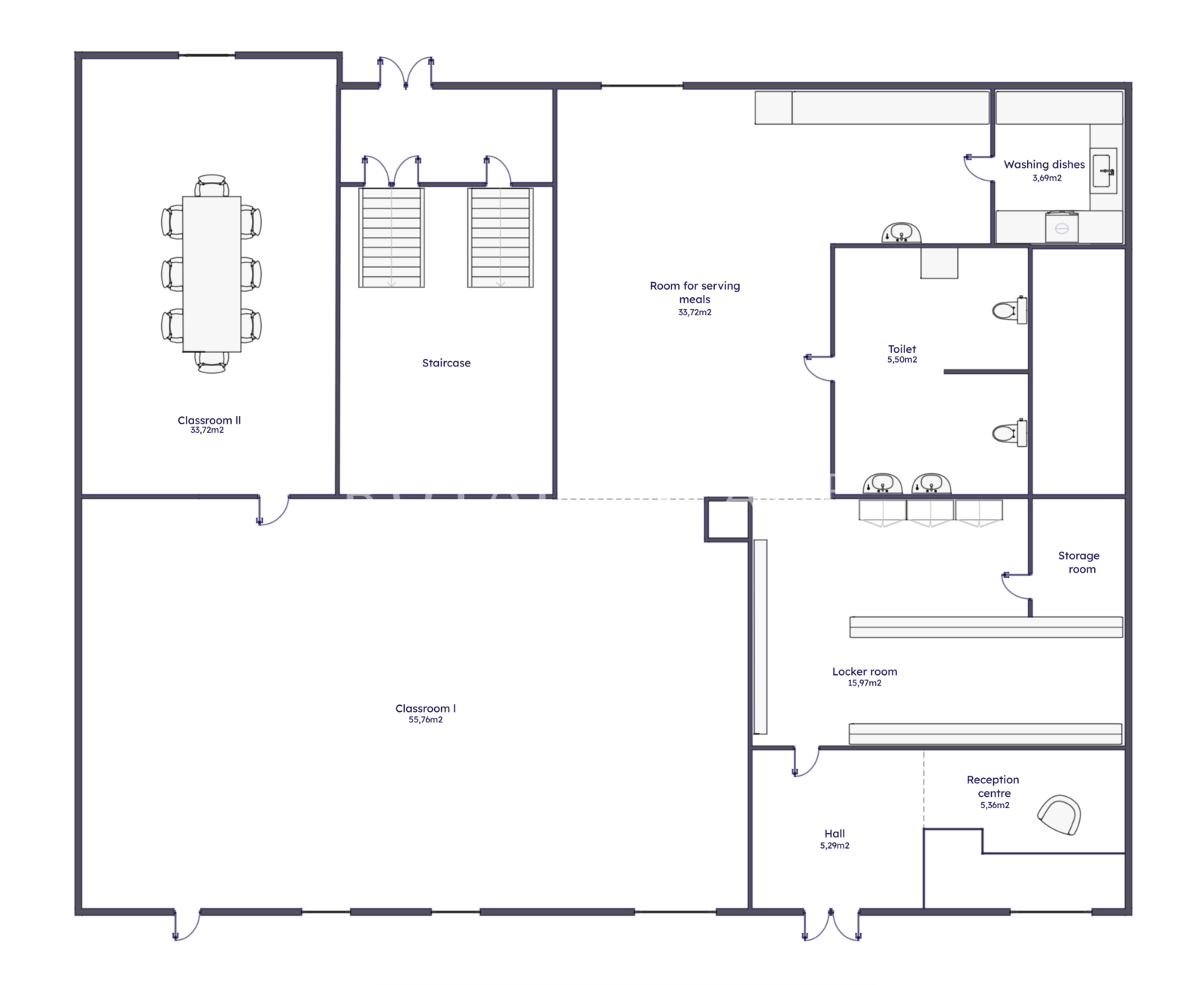 • open space 1 (obecnie sala dydaktyczna) – 55,76m2,