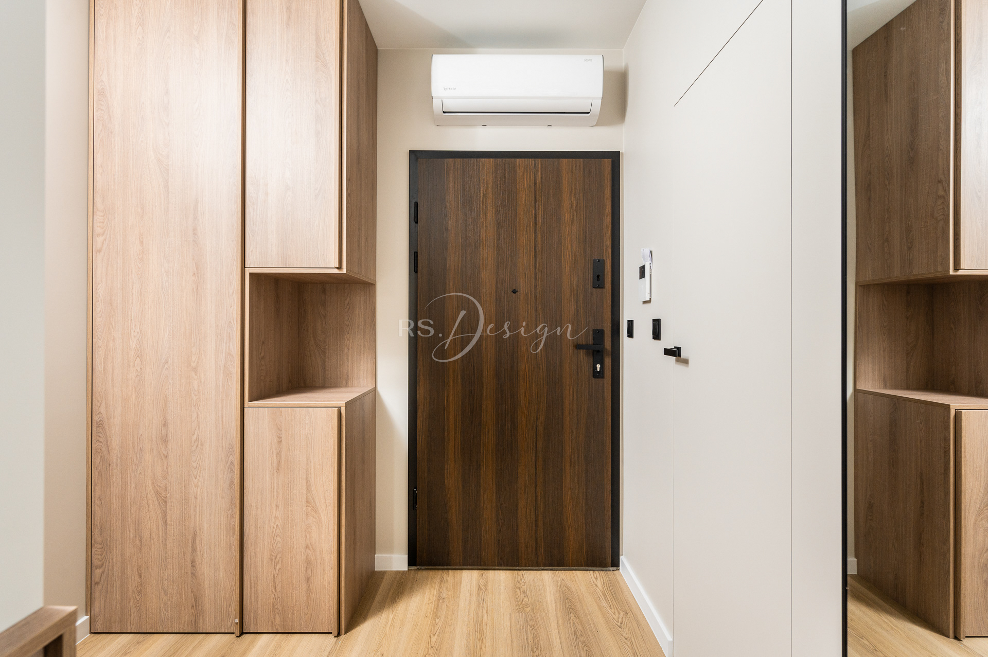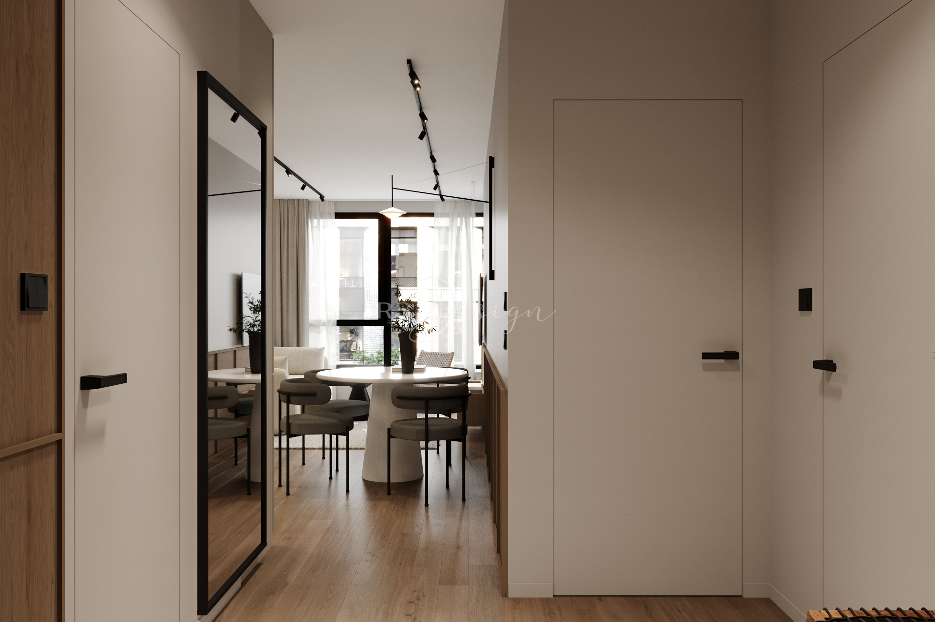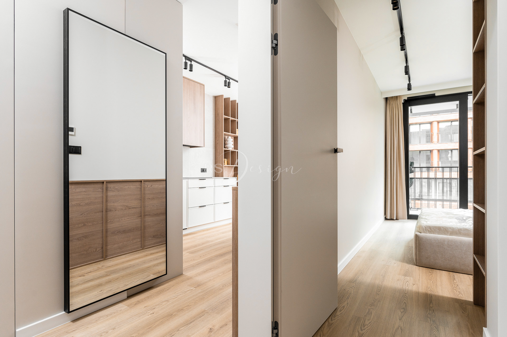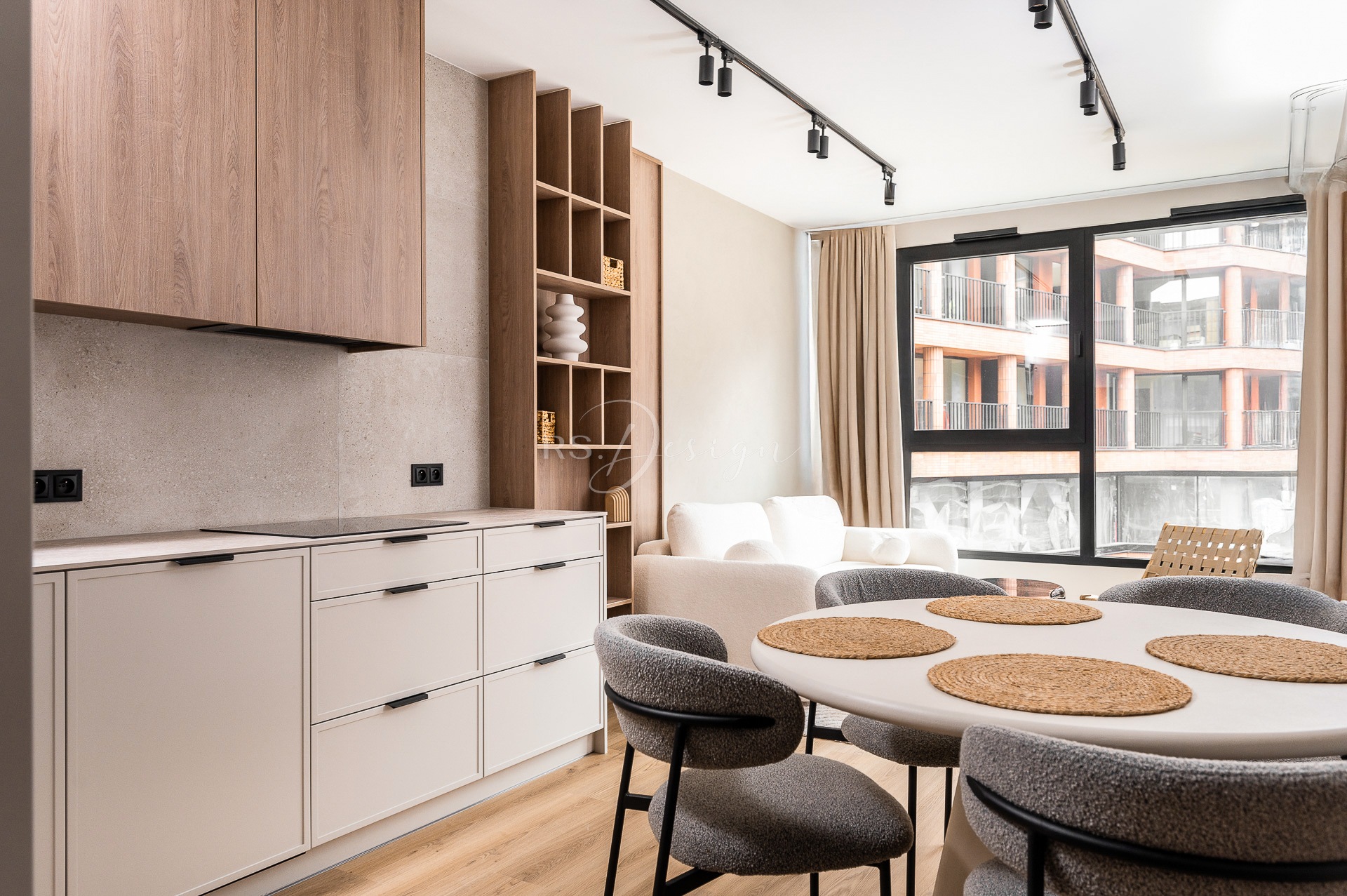 Ten projekt wnętrza w stylu Japandi łączy japoński minimalizm z przytulnością skandynawskiego designu, tworząc przestrzeń idealną do życia. Jasne drewno, naturalne tkaniny i subtelne oświetlenie nadają wnętrzom elegancji i harmonii. Kuchnia z zabudową na wymiar oraz designerskim oświetleniem została zaprojektowana z myślą o funkcjonalności i estetyce. Sypialnia z miejscem do pracy zapewnia komfort i spokój, a łazienka z podświetlanym lustrem i czarną armaturą dodaje nowoczesnego charakteru. Projekt został przygotowany w formule wykończenia pod klucz, co oznacza, że wnętrze jest gotowe do zamieszkania bez dodatkowych kosztów. To idealna propozycja dla osób poszukujących profesjonalnego projektowania wnętrz w duchu Japandi.