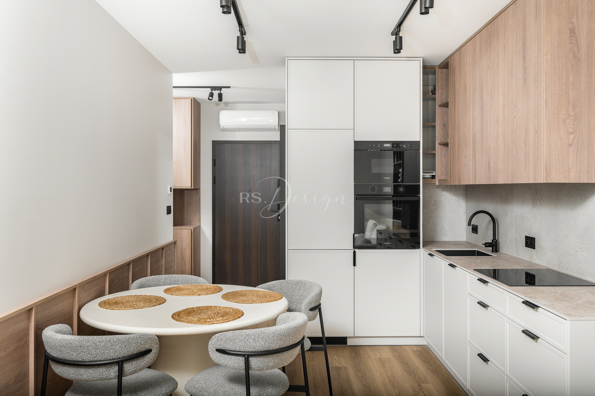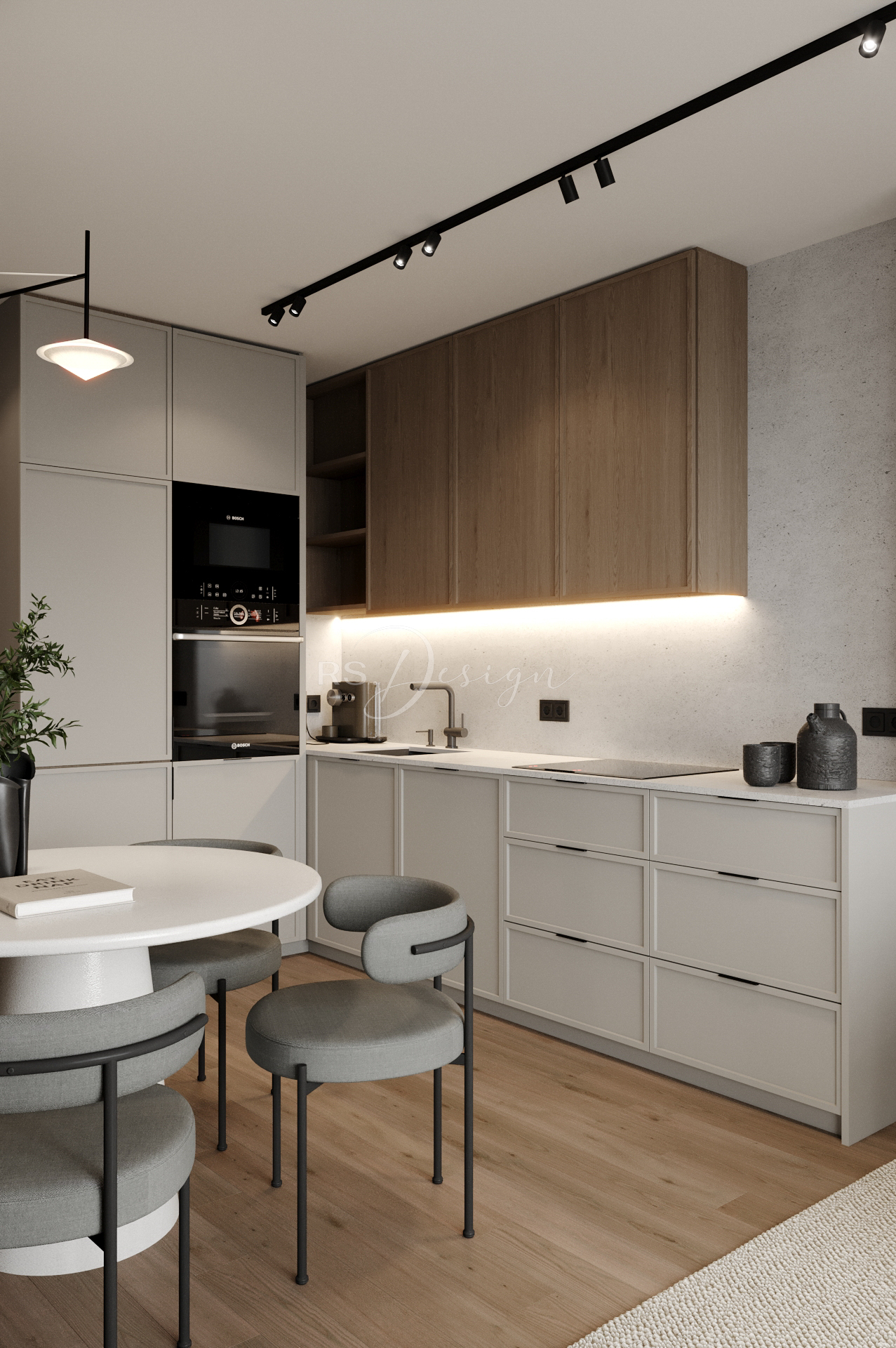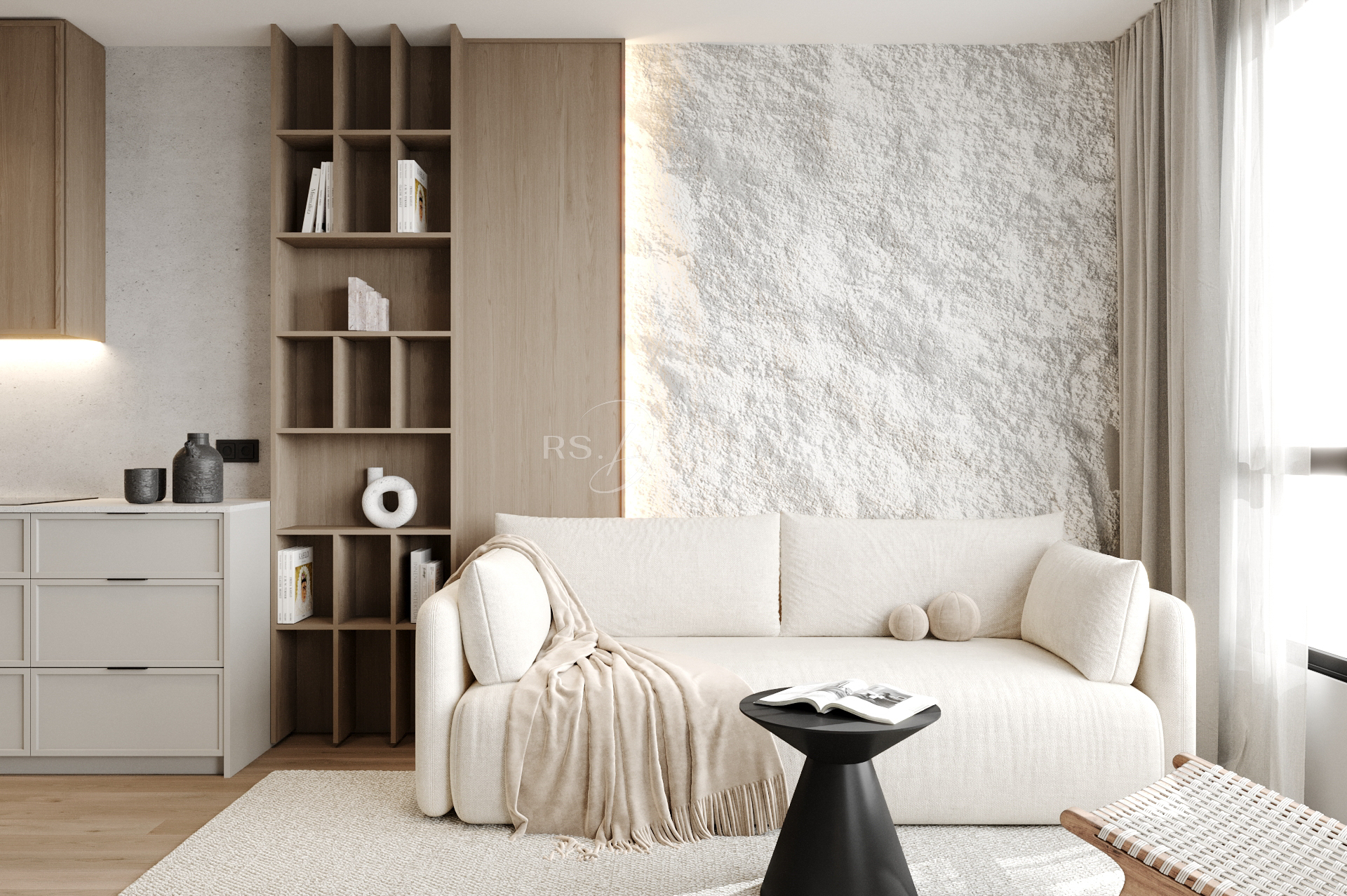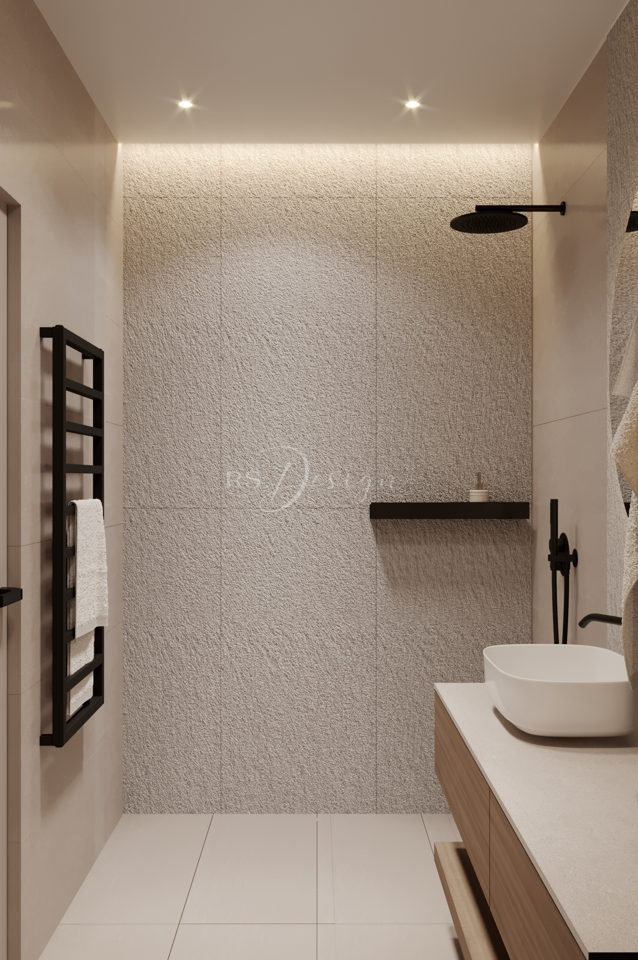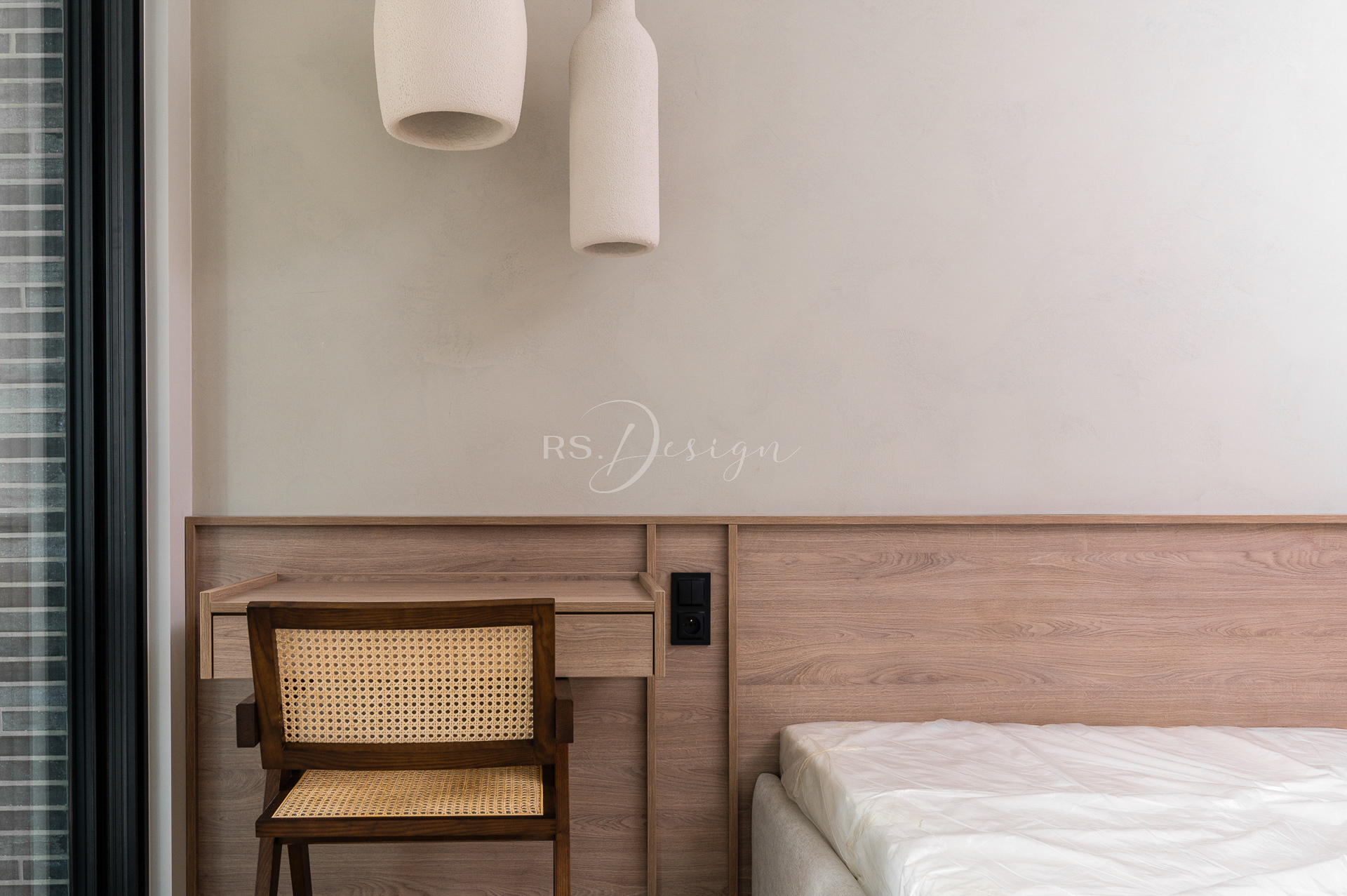 Ten projekt wnętrza w stylu Japandi łączy japoński minimalizm z przytulnością skandynawskiego designu, tworząc przestrzeń idealną do życia. Jasne drewno, naturalne tkaniny i subtelne oświetlenie nadają wnętrzom elegancji i harmonii. Kuchnia z zabudową na wymiar oraz designerskim oświetleniem została zaprojektowana z myślą o funkcjonalności i estetyce. Sypialnia z miejscem do pracy zapewnia komfort i spokój, a łazienka z podświetlanym lustrem i czarną armaturą dodaje nowoczesnego charakteru. Projekt został przygotowany w formule wykończenia pod klucz, co oznacza, że wnętrze jest gotowe do zamieszkania bez dodatkowych kosztów. To idealna propozycja dla osób poszukujących profesjonalnego projektowania wnętrz w duchu Japandi.