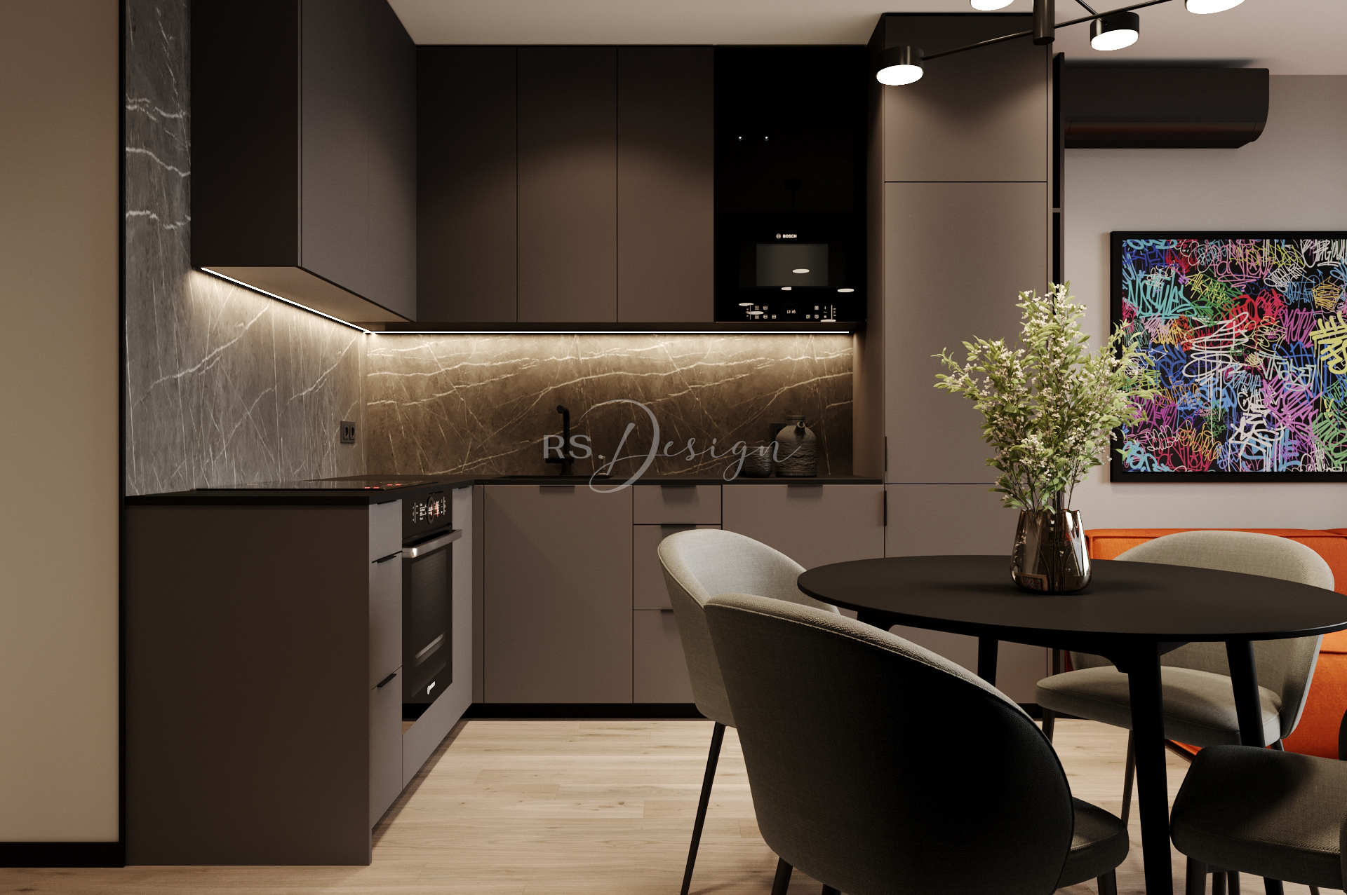 48,73 m² perfekcyjnie zaprojektowanej przestrzeni, która łączy nowoczesny styl z luksusem i funkcjonalnością. Matowe fronty, marmurowe akcenty i subtelne światło LED podkreślają współczesną elegancję, a pomarańczowe detale w salonie dodają wnętrzu wyjątkowego charakteru. Minimalistyczny design, stylowa kuchnia, klimatyczny salon i przytulna sypialnia – każdy zakątek tego mieszkania został dopracowany w najdrobniejszych szczegółach. To kolejna realizacja w inwestycji NOHO Mogilska, która pokazuje, jak połączyć estetykę z praktycznymi rozwiązaniami.